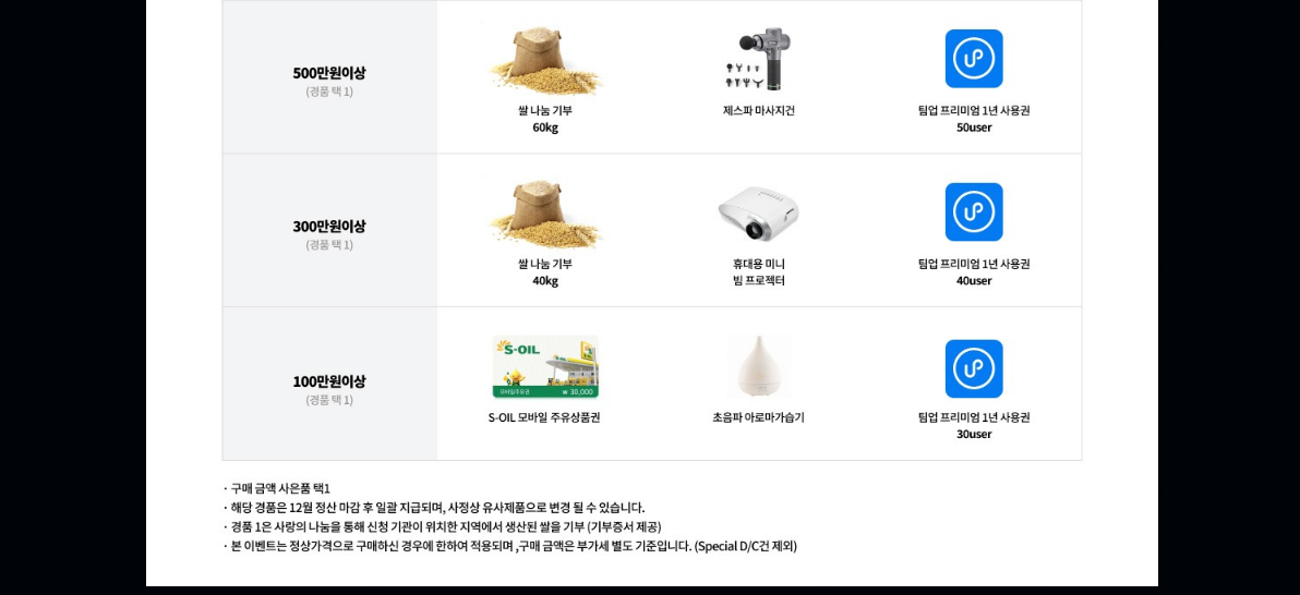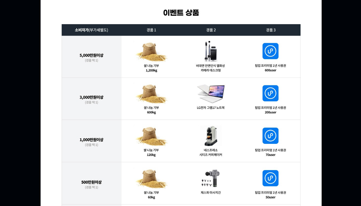 이번 이벤트는 기업, 교육용 제품을 100만원 이상 신규 구매한 모든 고객에게는 구매 금액에 따라