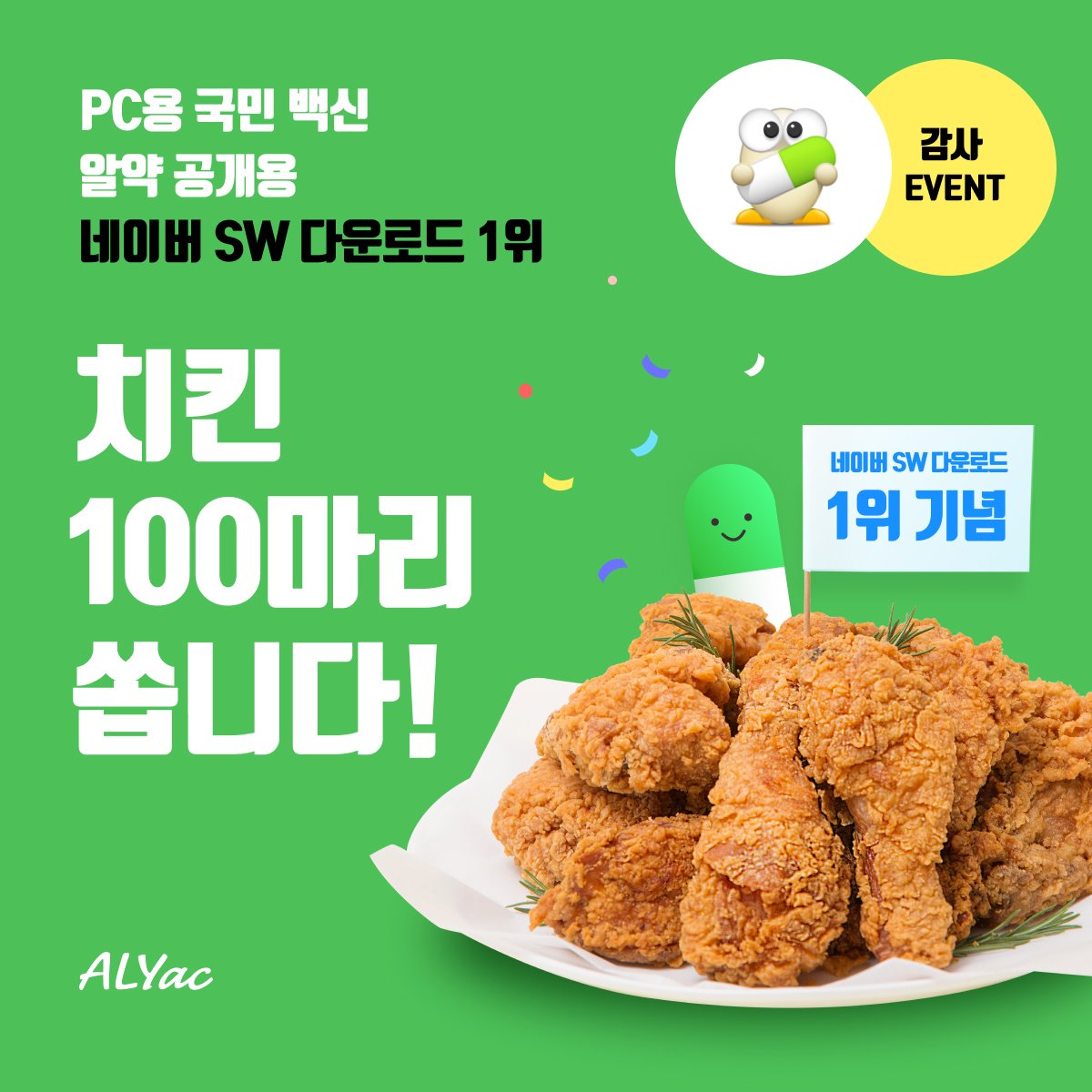 현재 알약은 이번 네이버 SW 다운로드 1위 달성을 기념해, 감사 이벤트를 진행 중입니다!