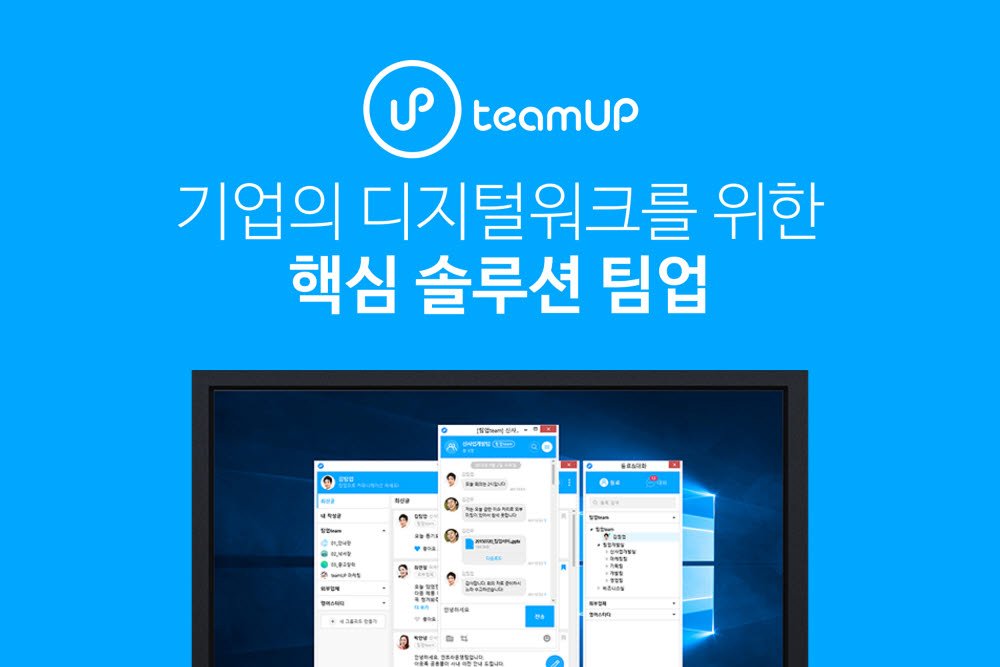 먼저 팀업은 원격근무 환경에서도 실시간 커뮤니케이션이 가능한 협업툴로, 가톨릭재단, 한미약품, 모두투어 등 국내 2만여 개 기업에서 사용 중인 제품입니다.