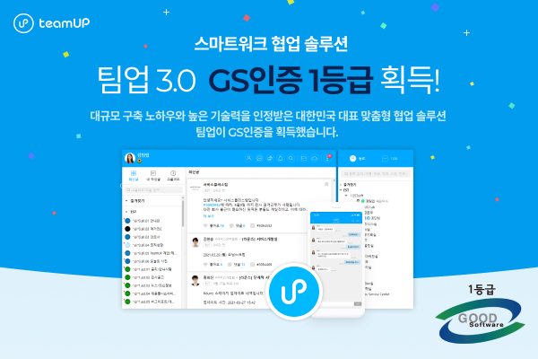 오늘은 스마트워크 협업 솔루션 '팀업 3.0'의 GS 인증 획득 소식을 전해드립니다.