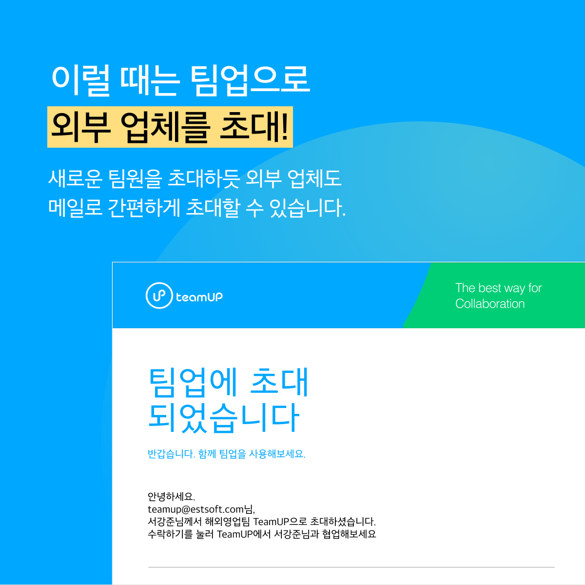 초대 기능을 활용하여 내부 직원은 물론, 외부 협력사와도 손쉽게 협업 환경을 구축할 수 있는데요!