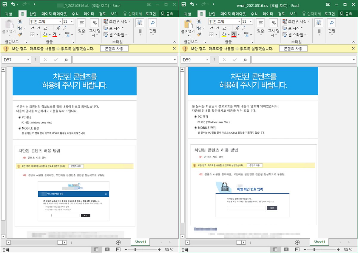 메일 수신자가 이 화면에 속아 [콘텐츠 사용] 버튼을 누르게 되면